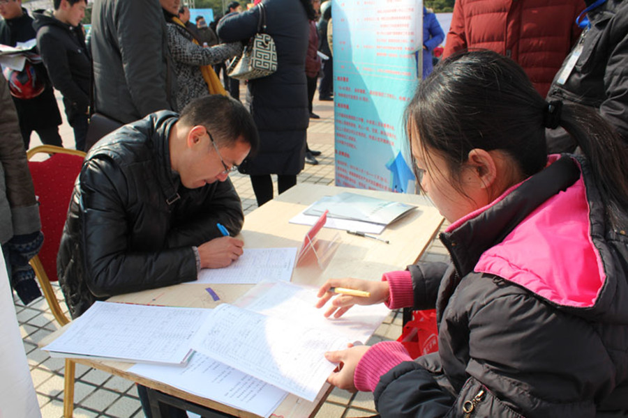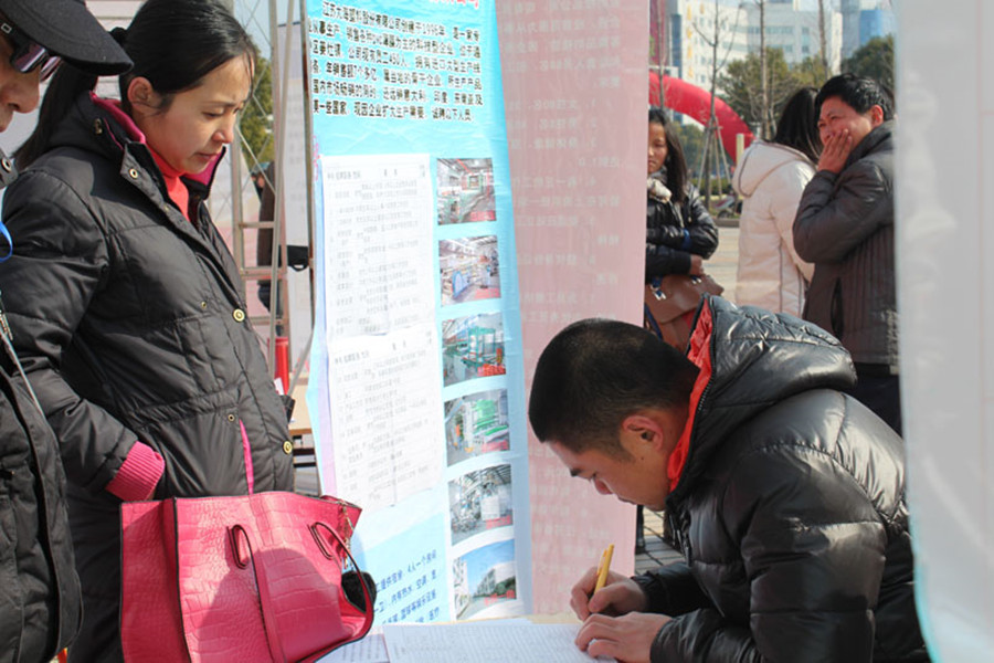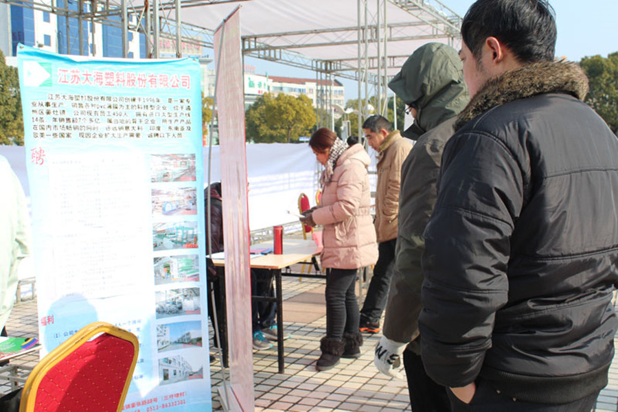 從2月8日起,公司除了在大門外張貼招聘人才廣告外,還陸續派出招工小組,分赴南通高新區、南通家紡城、南通人才市場招工。